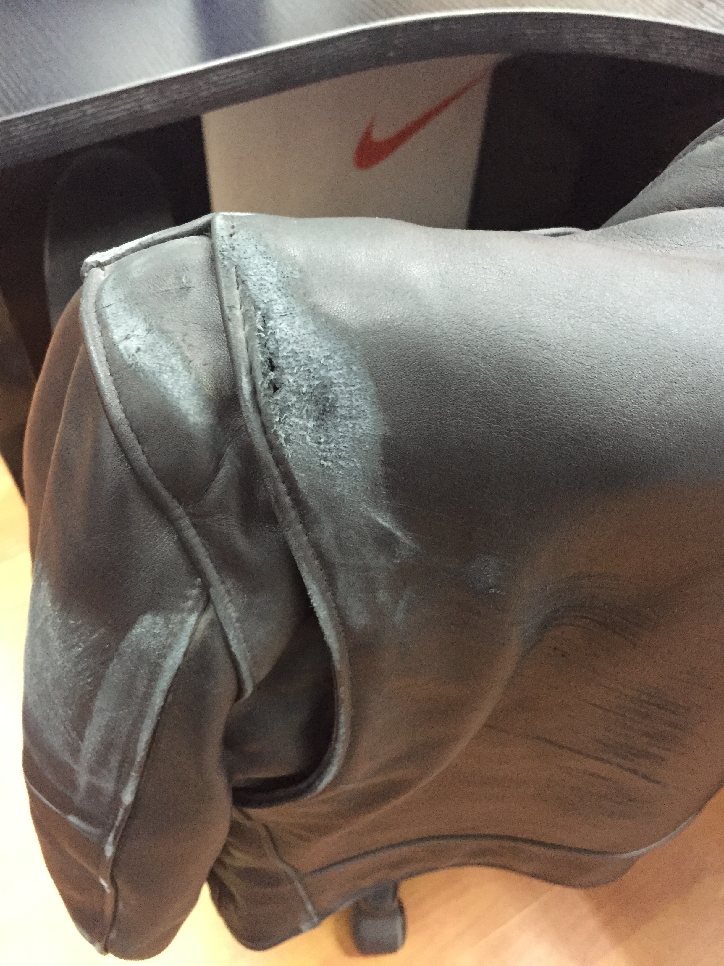 你去皮具护理的店试试 大一点的
