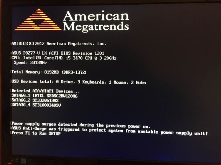 开机提示不是写了吗?电涌保护,看你的电源应该是没问题才对,可以换个板或者换个电源试一下。