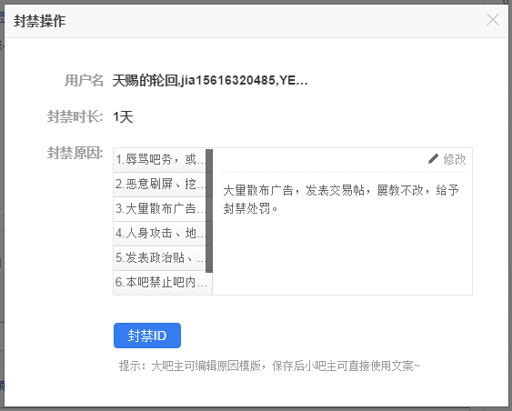 天赐的轮回吧内有不文明言语行为,拉小黑屋三天