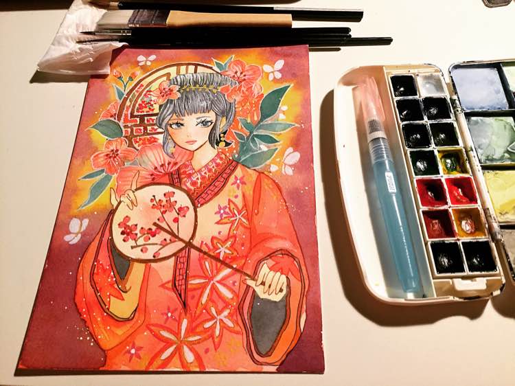 优妮的水彩画过程(♛︎‿♛︎)