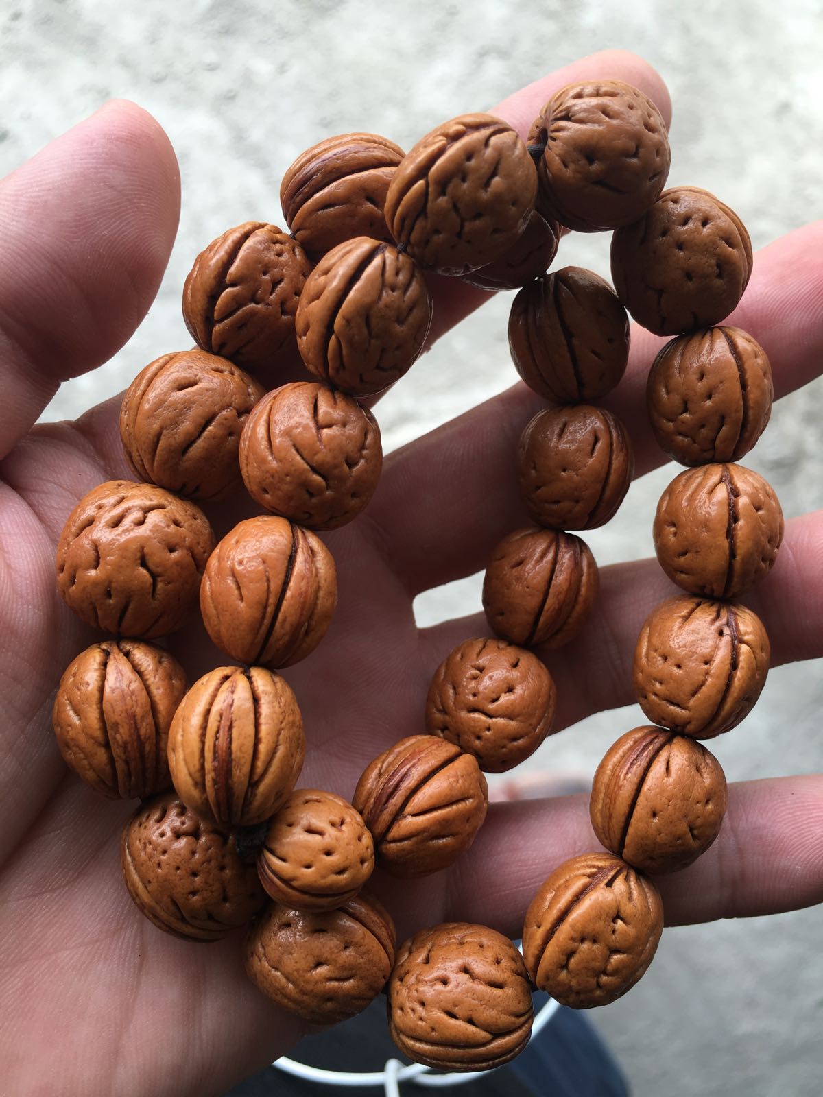 山上野桃自己剥的。准备盘盘放车上