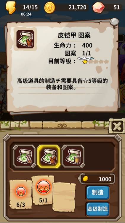 之前的装备升级到5星才能制造新装备