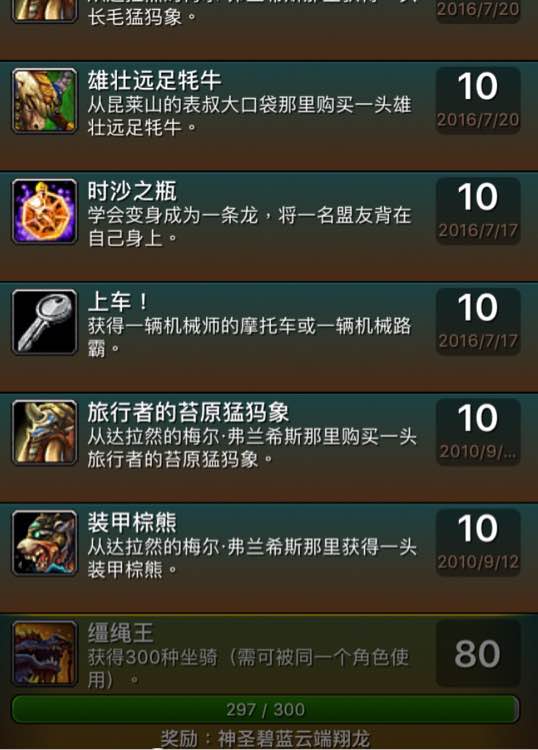 重点是我还差3个坐骑就300坐骑成就了 就差一点点啊