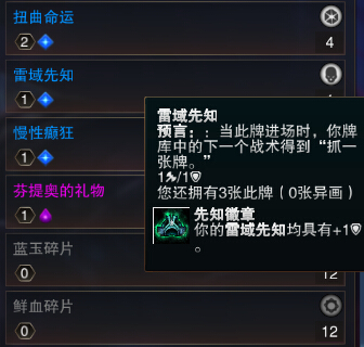 数量被字给挡住了0-0礼物我只有3个,还是萌新时候不知道PVE和PVP的区别时候买的,还以为能在对战里面用,着实坑了一把233不过还是用到了,可以说大部分翻盘都靠它了吧233,梦境蜘蛛也是那时候买的,以为能用在对战,是2张,一般般吧效果,癫狂是4个,雷喻先知杀戮腐化施术我只有一张就带了一个