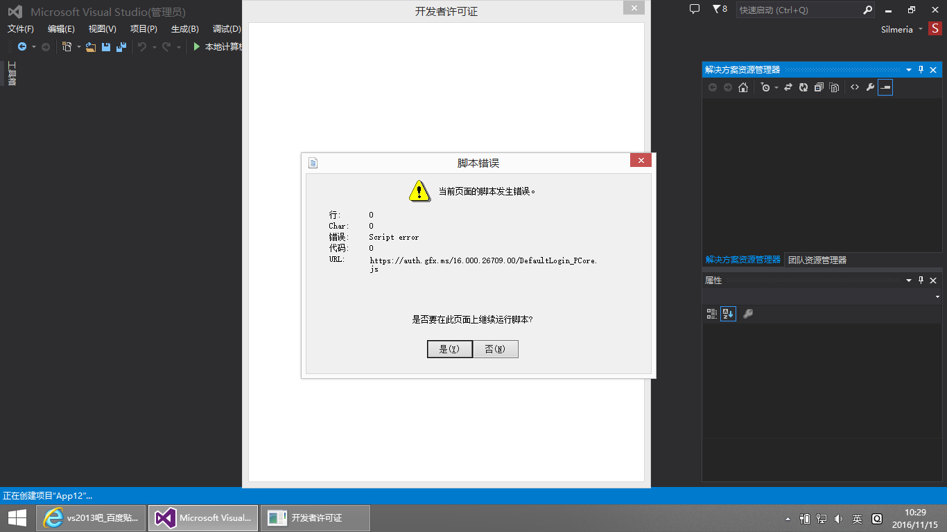 每次新建项目都要我获取开发者许可证,我点同意就弹出个脚本错误,关了之后也没法打开XAML编辑器,这怎么办啊