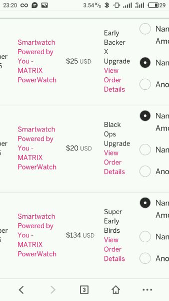 今天看zaker,看到了一款利用人体热量转化电能供电的号称不用充电的智能表MATRIX PowerWatch,240*240的memory LCD,圆盘,航空铝表盘+尼龙表带,看问答目前不支持背光和震动,2017年7月发货后台,15刀运费。