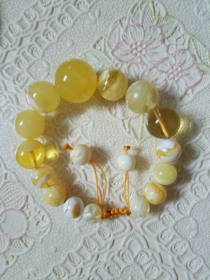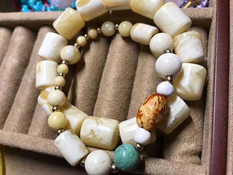 把买来的大珠珠和小珠珠串一起了,好看么(^ω^)