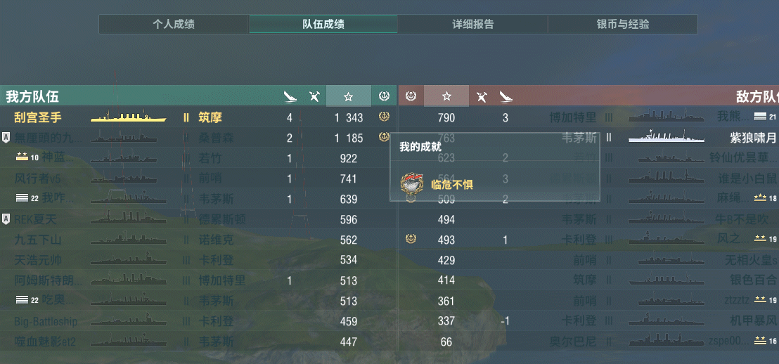 【161118】[游戏讨论]想不到我筑摩都能1vs5,打出临危不惧勋章!