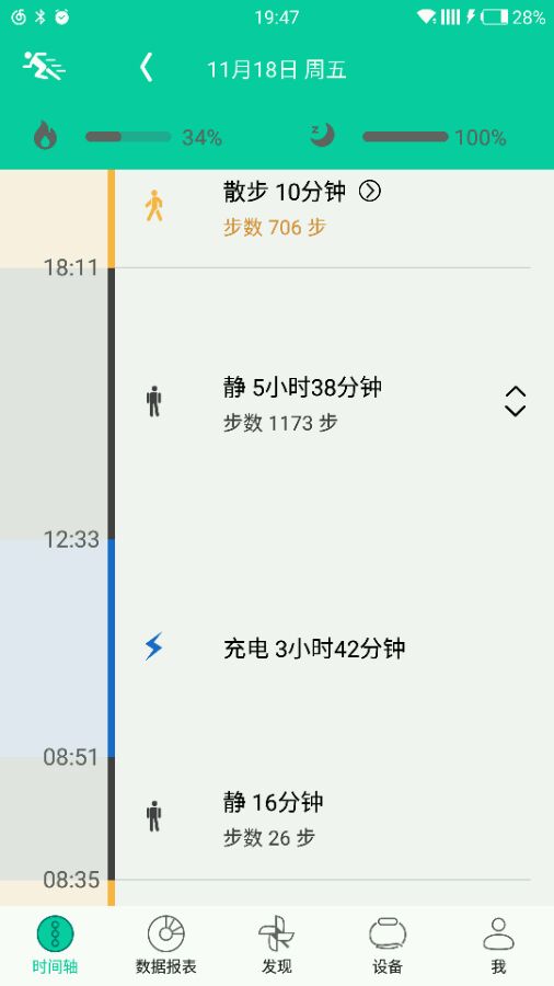 京东十一月3号买来时就没电,然后充满了用到今天早上屏幕上出现电量不足图标,然后插上充电,充满后戴上,结果刚刚一看手环上又显示电量不足图标,连上app一看就剩百分之一了。图片是充电记录和电量。