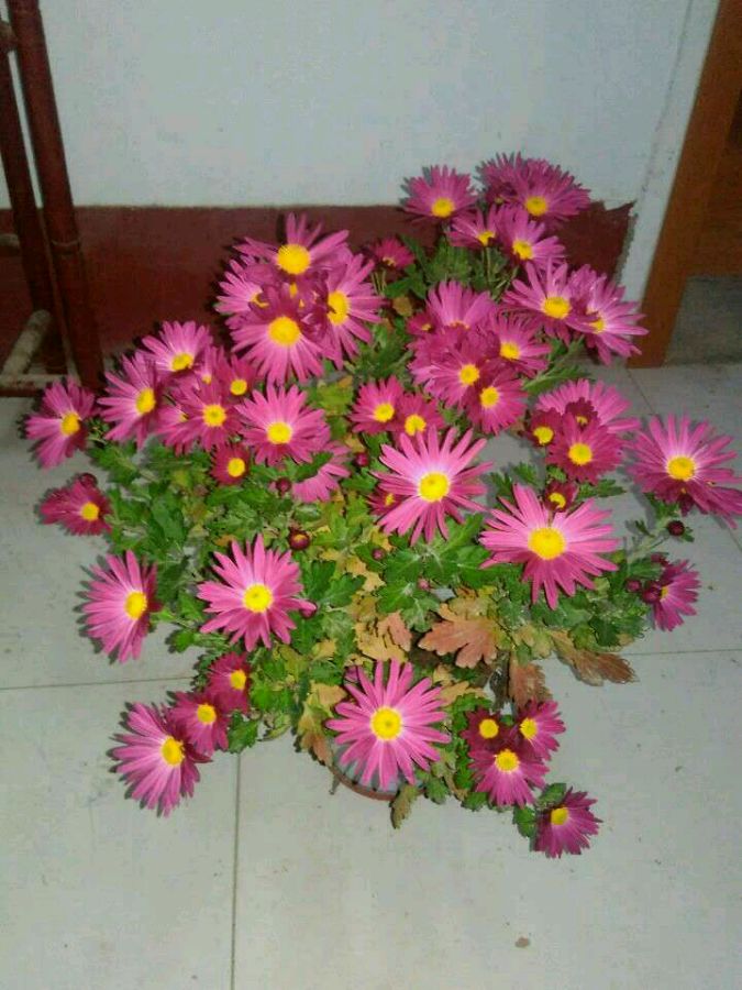 第一张是去年开的。没控制好株型,东倒西歪的。只能照了张这样的,佩服我像是给菊花拍的的艺术照,实际它是后面那样的。最后面两张是今年的开花效果图,今年漂亮株型好,开花就是一个花球。不过照片都是晚上拍的,不如白天拍的颜色效果好,今年白天忙的都没拍照的时间了。