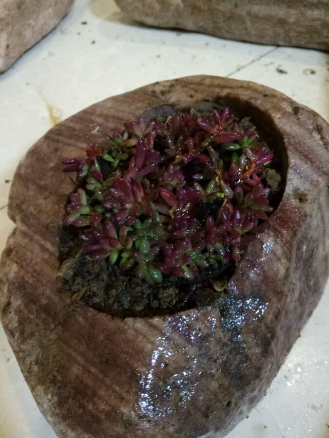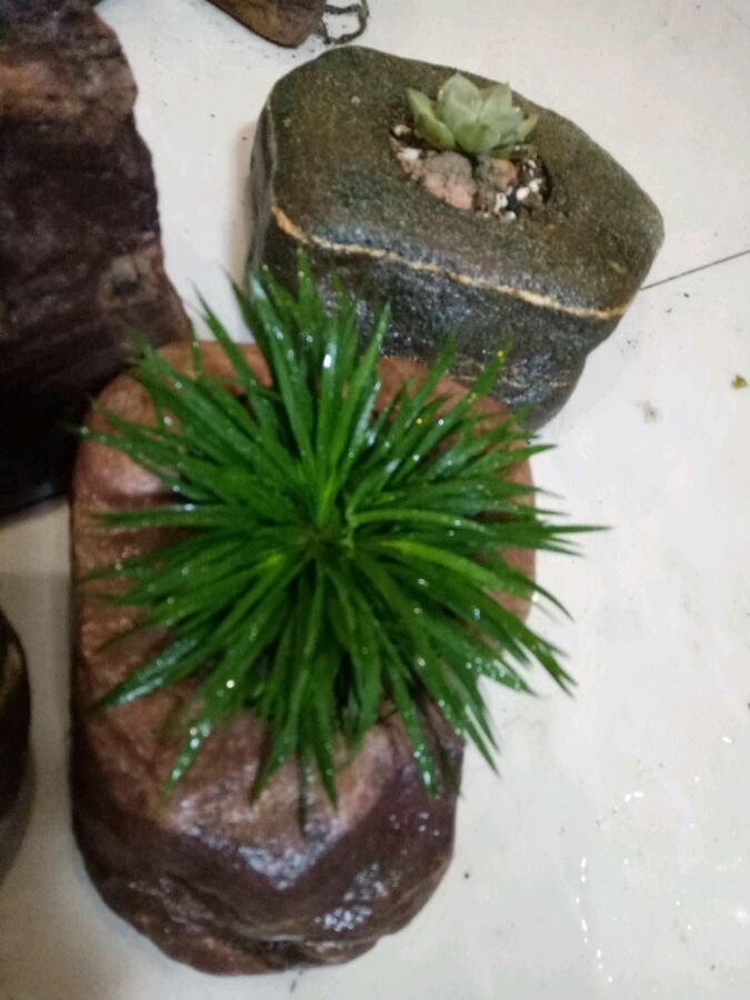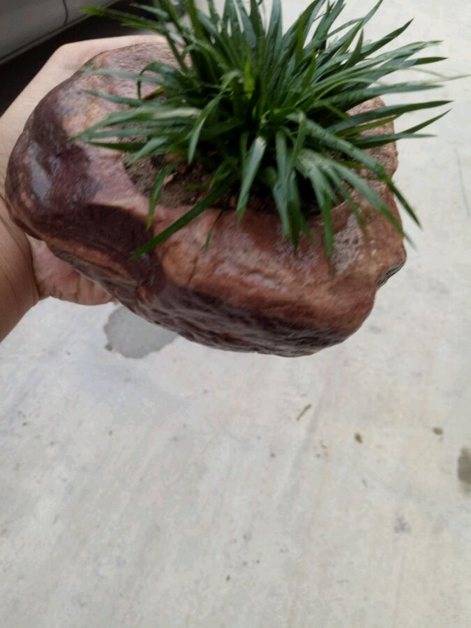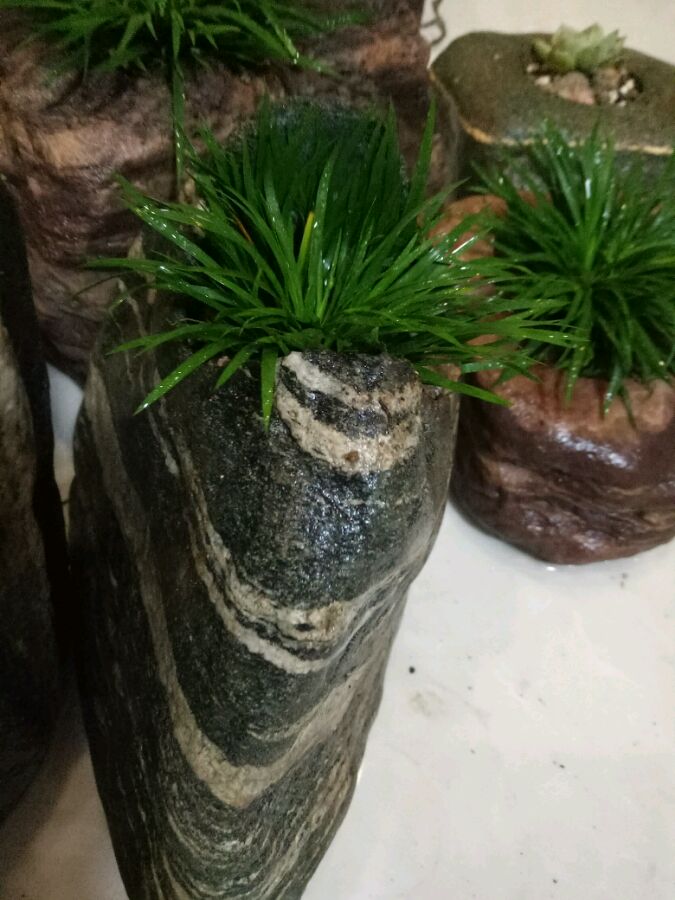 自己做的石头花盆,跟菖蒲很搭