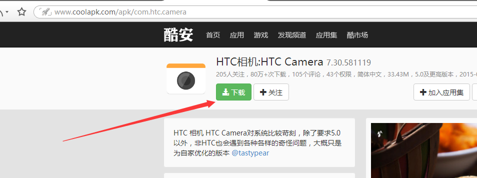 3.到http://www.coolapk.com/apk/com.htc.camera这个连接下重新下载HTC相机应用