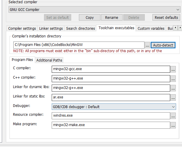 下载了带编译器的codeblocks,也设置了自动查找了路径还是不行啊