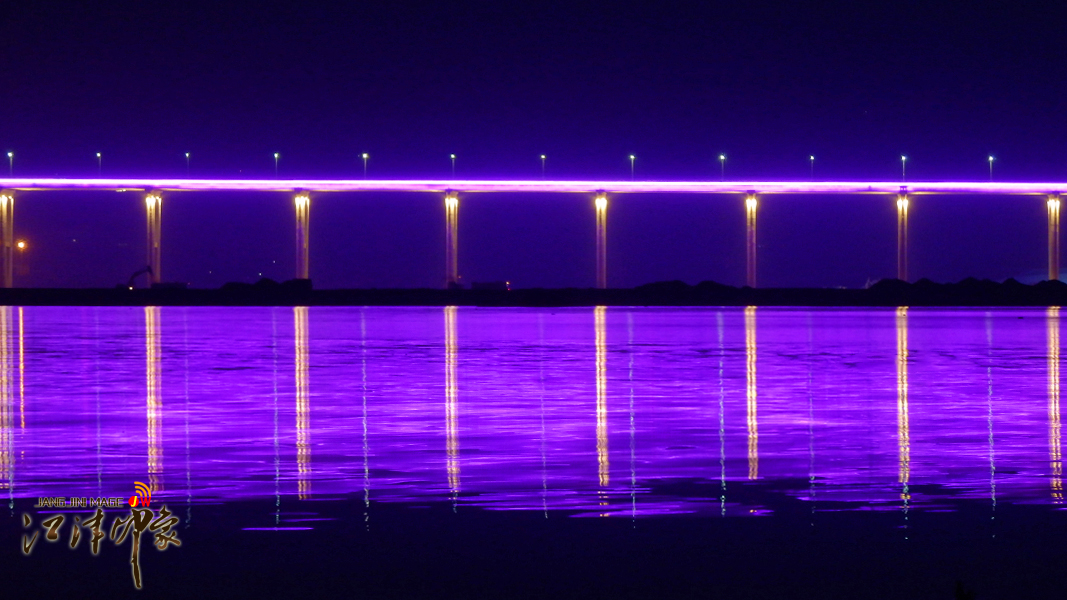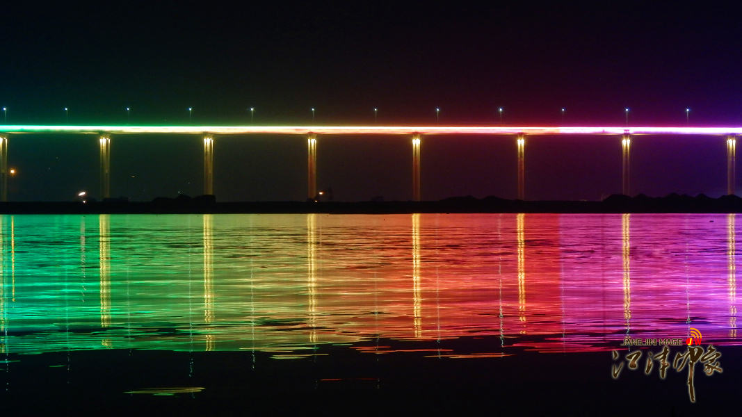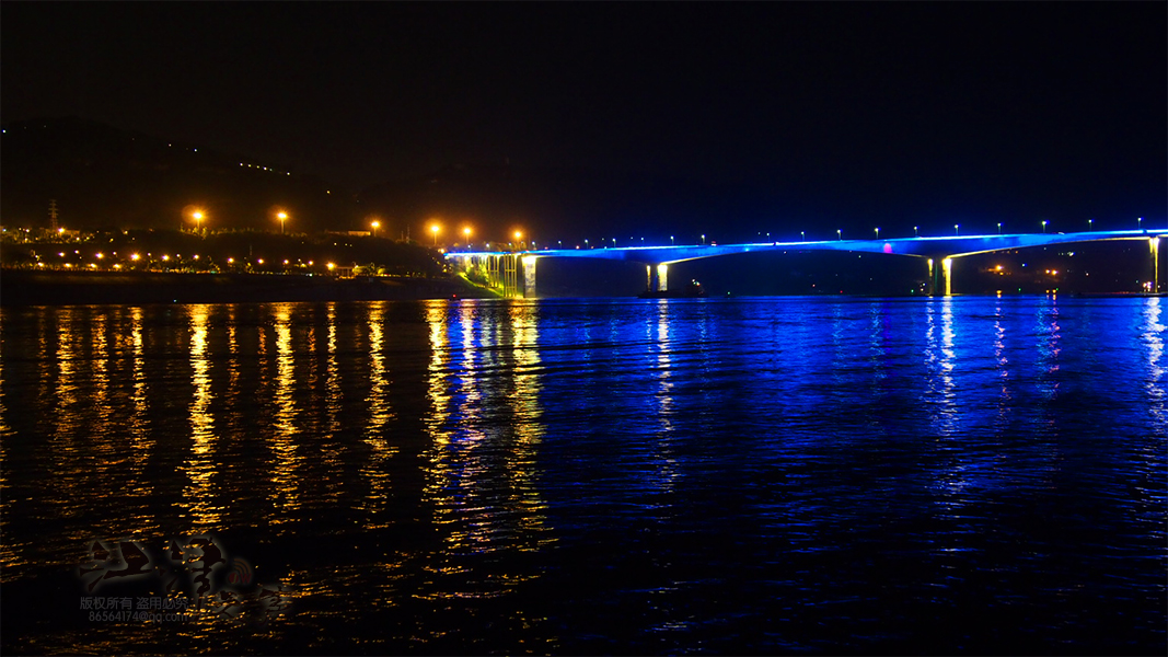夜幕下的江津长江公路大桥,流动的灯光,让整座桥的景观照明显得格外的动感时尚。
