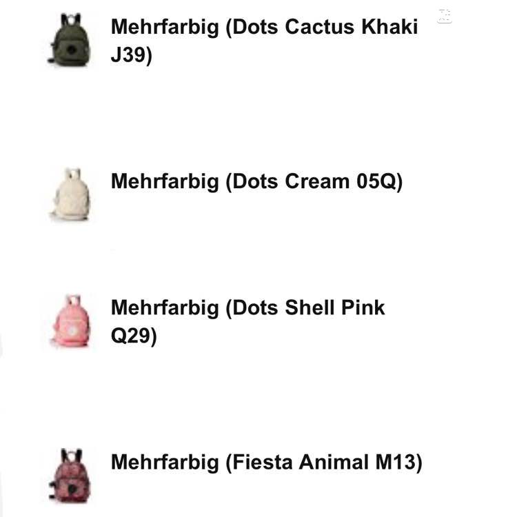 kipling包每季都会推出不同配色,以这款miniback为例,国内专柜版货号k12673,欧版k19085!分别在春夏秋冬四季各自出了几种配色,这样简单算一下就有20-30种配色了!