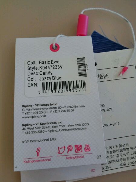 继续,上面讲了任何正品kipling包都会有色号!只有款号没有色号的100%是假货!