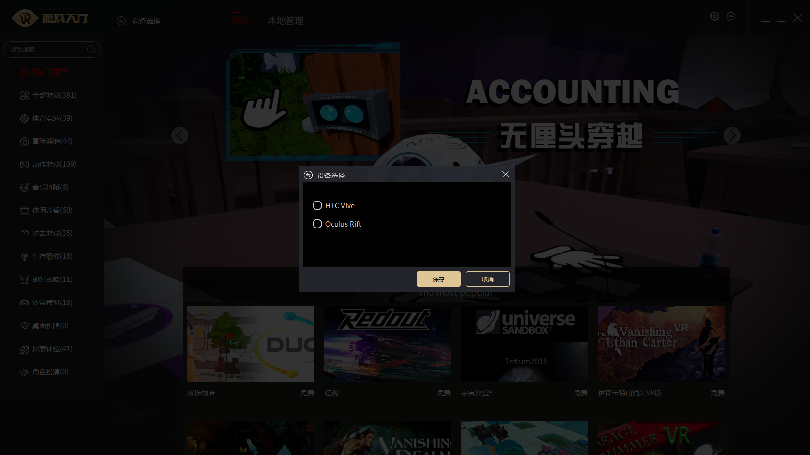 支持HTC和Oculus两大VR设备