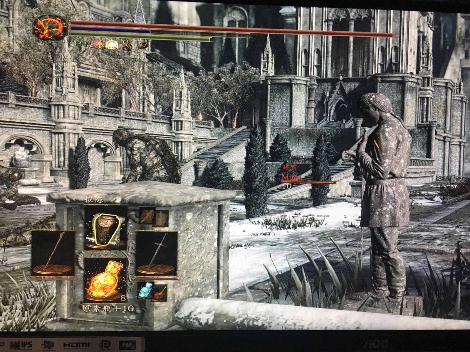 世界主卡在法王出来左转上去的楼梯缝里,我一个暗月直接跳他头上结果BUG浮空,10秒强制死亡...继续和银骑士谈笑风生吧