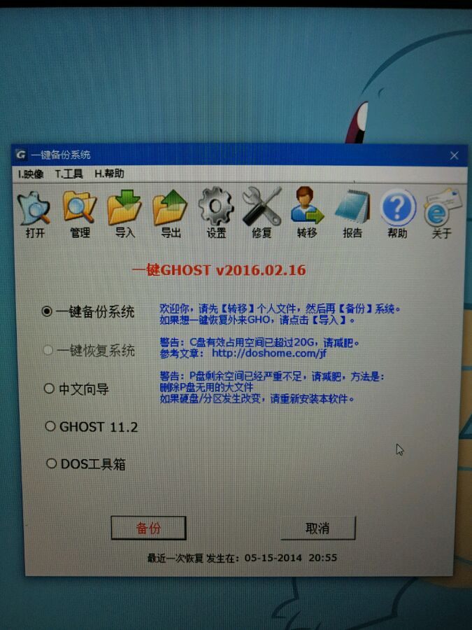 新电脑,旧硬盘,重做的系统,想备份下,备份不了