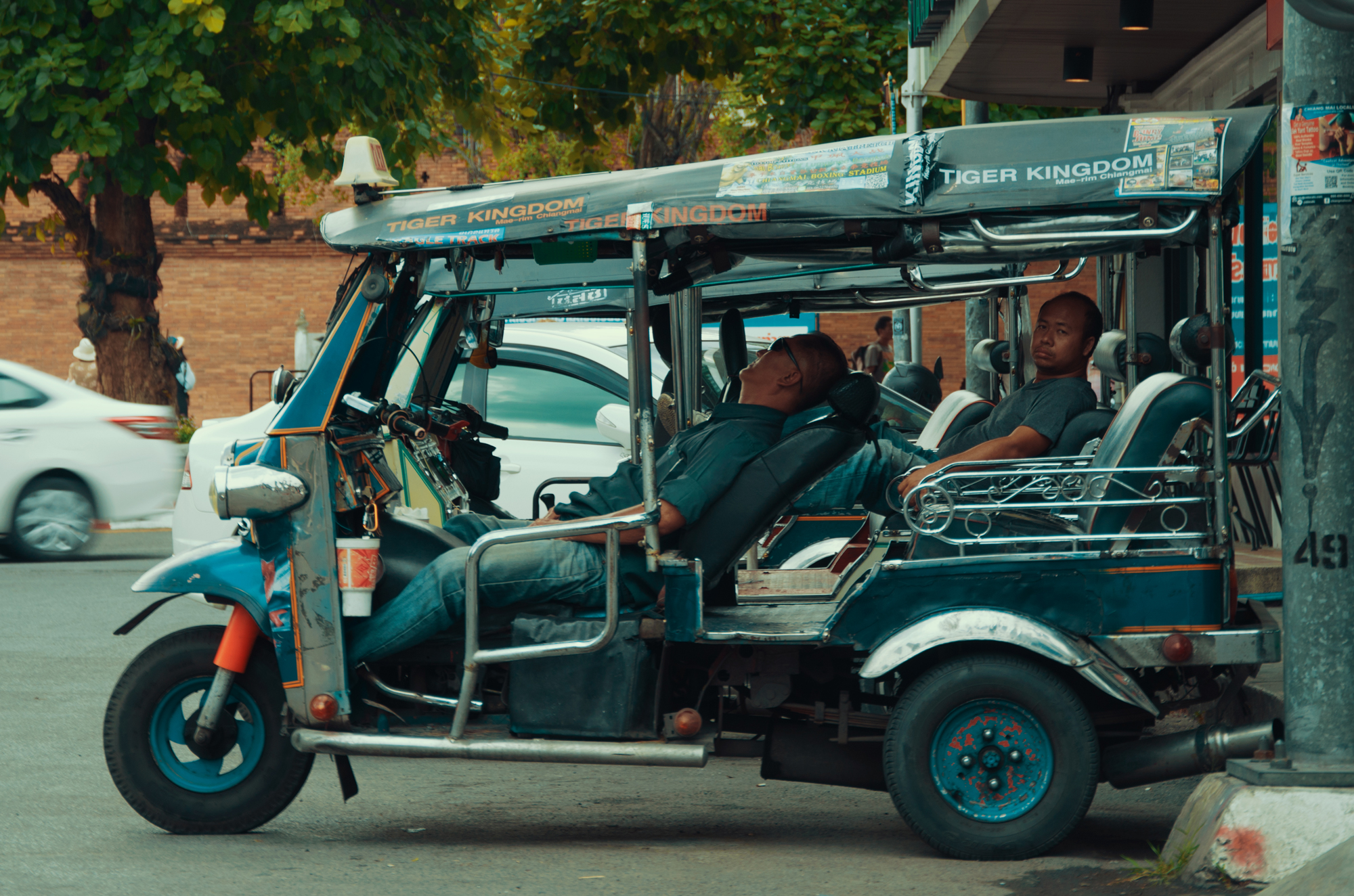 这张算是我这一行最满意的一张吧,在清迈车水马龙杂乱的街道上,车夫悠闲地在他的小车里看报纸,仿佛外面嘈杂的世界与自己无关,他关心的可能是即将出台的民生政策,又或者是某个明星的小八卦。。。