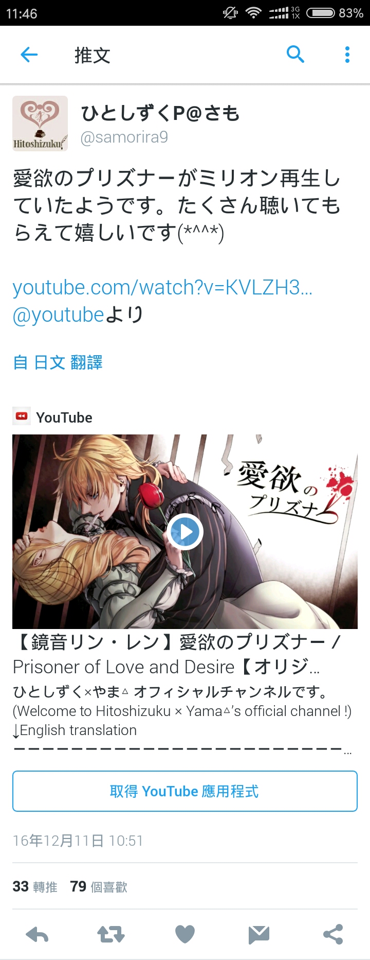 油管上爬梯爬梯再生百万了☆恭喜!这首也算是快的吧毕竟15年的曲子?不过大概没有曲子快得过祝福塔吧w
