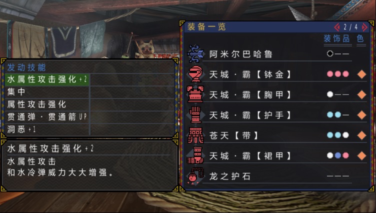 水兽轻弩用水冷弹,套装前期潜口后期岚龙,配出技能速射,并让水属性攻击+2,这样就水冷弹没打完就解决了。(打头就行,弱点腹部难打到)