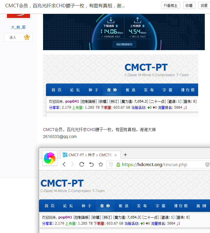 CMCT会员,百兆光纤求CHD腰子一枚,有图有真相,谢谢大神