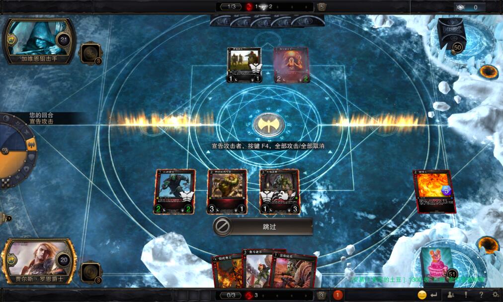 说HEX对于某石入门难,因为对于萌新来说,虽然上图感觉没多少内容,所要关注的信息依旧很多:①我的手牌,②我的剩余费用,③对面的剩余费用和颜色,④我场上的部队和对面场上的部队,⑤以及他们各自的攻击/生命值。
