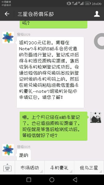 等等呗,反正我已经联系三星客服准备到官方授权服务站去退了