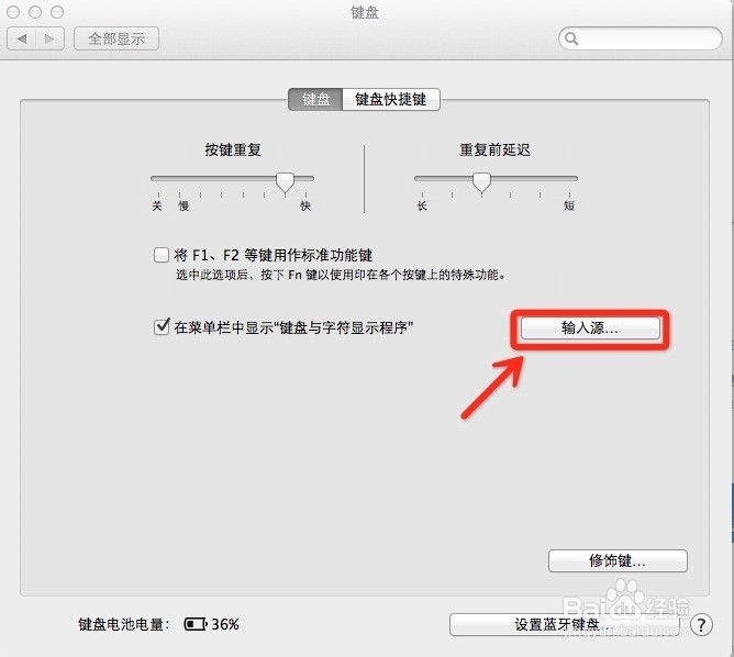 在弹出的“键盘快捷键”设置的界面上,选择“键盘与文本输入”栏,勾上“选择上一个输入源”勾选框,默认热键即为花键+空格键,也就是“command+空格”!