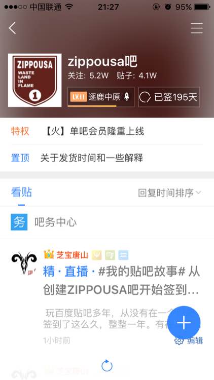 2016年1月5号 本吧第一个真正意义上精品帖《ZIPPO兄弟会》,由“机缘ZIPPO”所写。https://tieba.baidu.com/p/4251826738