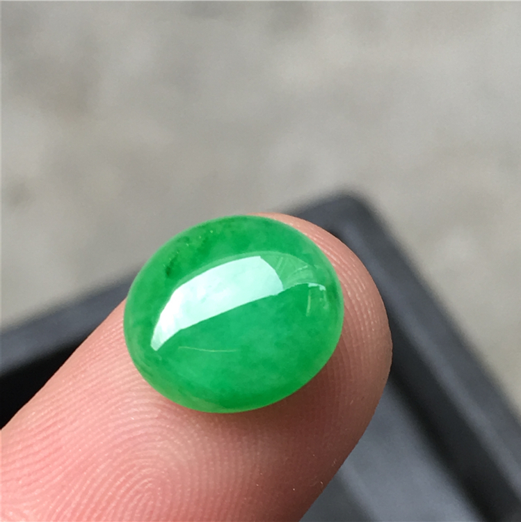 尺寸:14-11.8-4.3mm,完整,满绿色阳艳正,色气满满,饱满形佳,镶嵌一个戒指美美哒