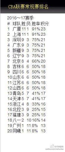 【汾酒必胜】CBA联赛最新排名