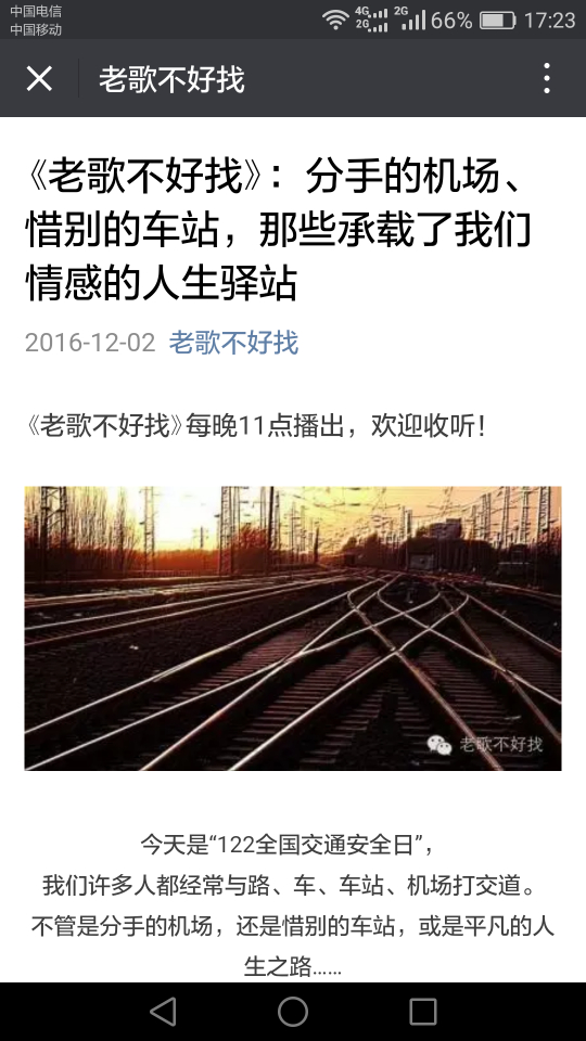 今晚23点天津交通广播《老歌不好找》节目,会有阿哲的《雾中机场》和温Sir的《台北的机场》,欢迎收听!
