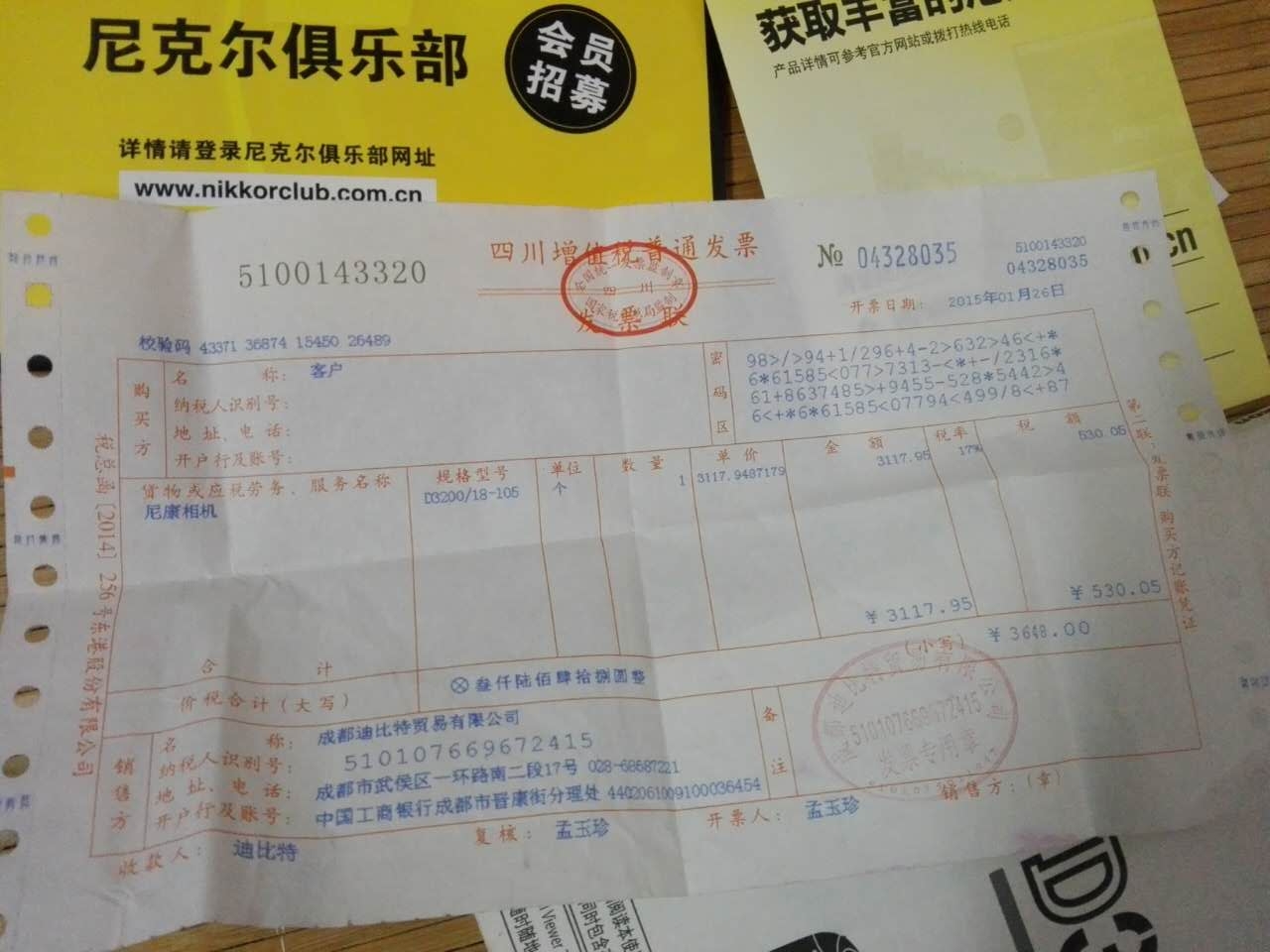 发票和配件都齐全的,还很新,没怎么用!正规渠道买的!买的时候三千左右!尼康官方网站也可以查询到序列号注册的记录!