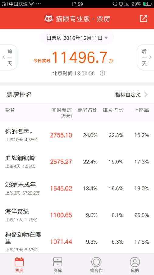 每日票房粗报