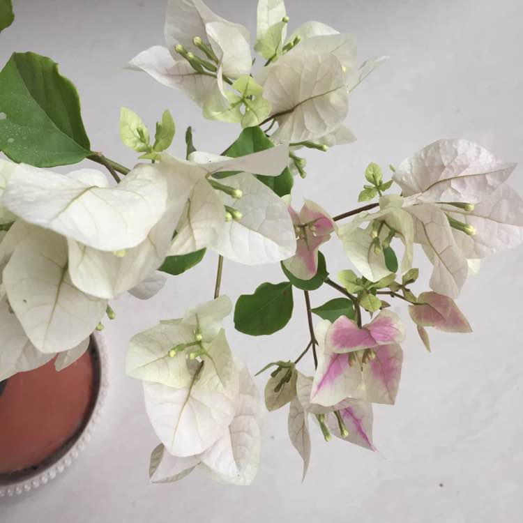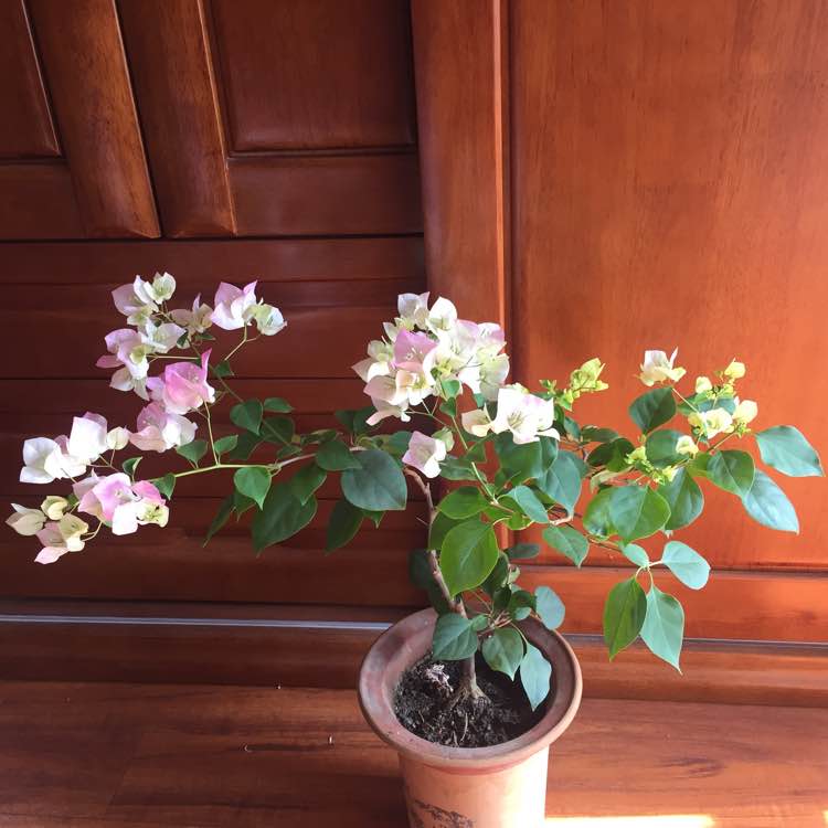在宿迁买了蓝色的三角梅后,心心念念盼着开花,结果开花后倍受打击!从此进了贴吧去了解三角梅,色彩绚丽的三花图片让人着迷,由此入了三花坑……最初很爱的是绿樱。室内不上色,室外晒了几天才上色。