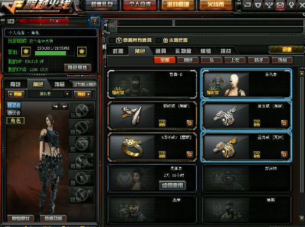 山东一区,黑龙屠龙复仇者,战场4卡10,其他9或8,4套高钻,这是个闲置号,我估计快1年没有登录游戏了,还有8000cf点券,这次幸运星是1折,一年烟雾头只要18块呢!450块支持信誉中介申诉放款。