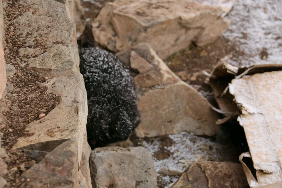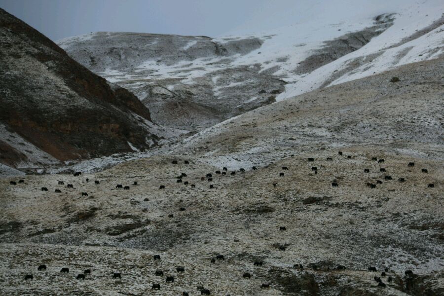 喝多了几碗酥油茶,出门方便,刚好看到山上还有两个阿佳在铺牛粪,唉,都是为了生活呢。雪地里一个小藏狗出来卖萌了,说实话藏狗的生育能力挺强,但是活下来的真的都是精英,手机里还拍了它向妈妈讨食的小视频,卖萌的背后是真的好可怜,它的兄弟姐妹们,应该都已经归西了。说到这里扯个话题,藏狗发情比藏獒晚,这个小狗仔都出门了,小獒仔还在妈妈肚子里呢,说是还要再冷一点才有小獒出生。