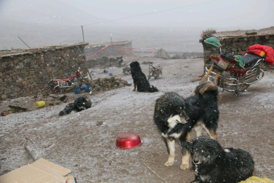 进屋说着说着,就下大了,狗都围在门口,想进屋里讨口吃的。(感觉有点像油画哈)都是藏狗,因为这几家条件都差了点。家里有个十几岁的小男孩,汉语就会一句不知道,唉,想让他帮帮我找几个藏獒拍拍都没办法。在牧区狗的生存条件都比较艰苦,要看家护院,忍受寒冬,吃的也不多。这就是一部分藏獒藏狗们的生活条件,想想内地那些养藏獒的,天天关在笼子里,真的太可怜了,都逼疯了。藏獒藏狗虽然懒,但是在原产地都是有那么一片自由天地的。