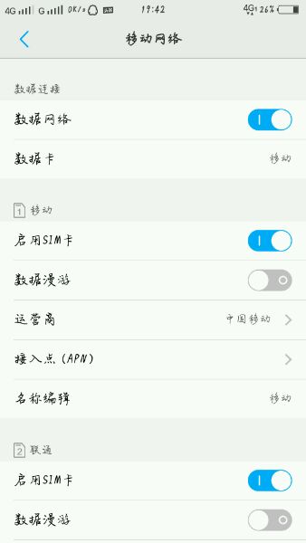 打开设置 移动网络 数据卡