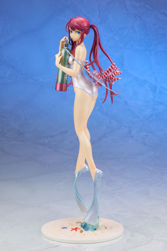水中でダイビングをしている姿を思わせるふわりと広がる髪の毛の流れ、タンクとレギュレーターを持つ指先、足先のフィンの動きなどが繊細なタッチで表現され、ミノカサゴなど小物も細部にまでこだわった造型により、シンプルな佇まいながら美麗なフォルムが印象的なフィギュアとなっております。