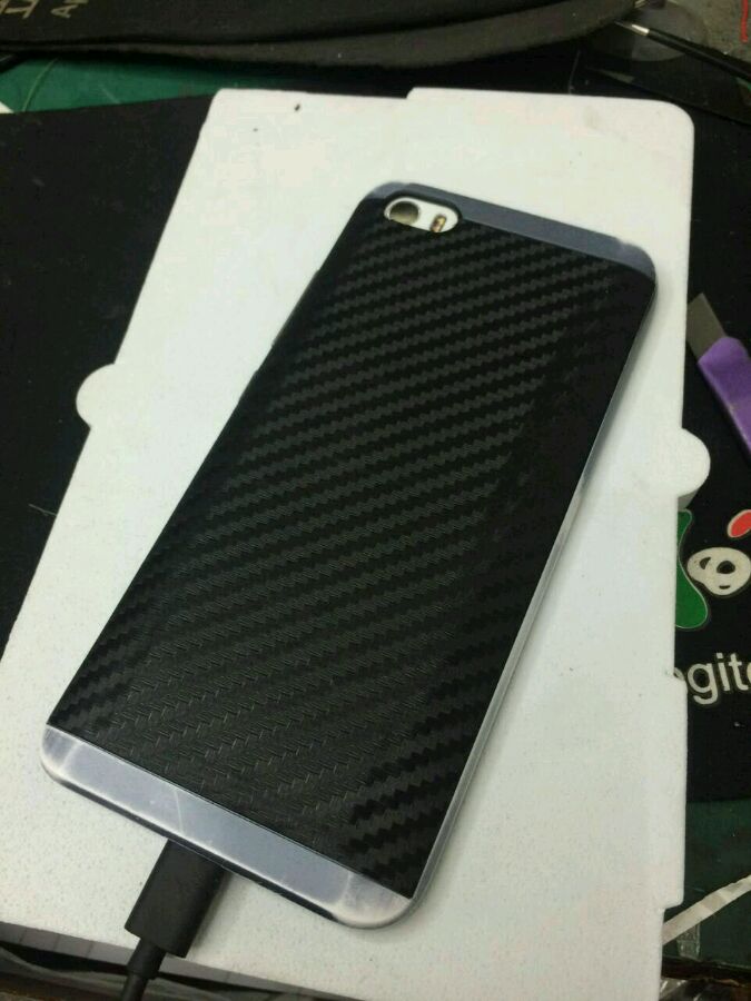 旧的手机套 还有一块小米五的塑料后盖。在这两个地方按照那个电池的位置开窗 把电池放进去比划了一下刚好,比较平。