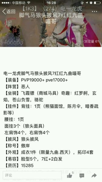 843【电五双梦军娘】95CW紫龙寂地红捕风6W资历6奇遇7成衣三代黑情人枕龙披风猴金多宠物多小铁里飞沙