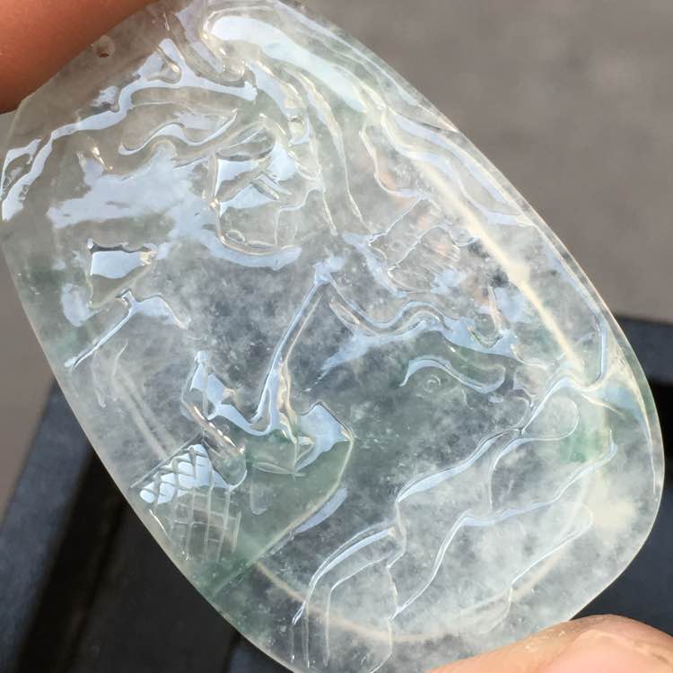 💰888,冰种山水牌:41.1-26.9-3mm,完整无裂,通透如水,白净纯洁,水润光滑,可镶嵌后佩戴