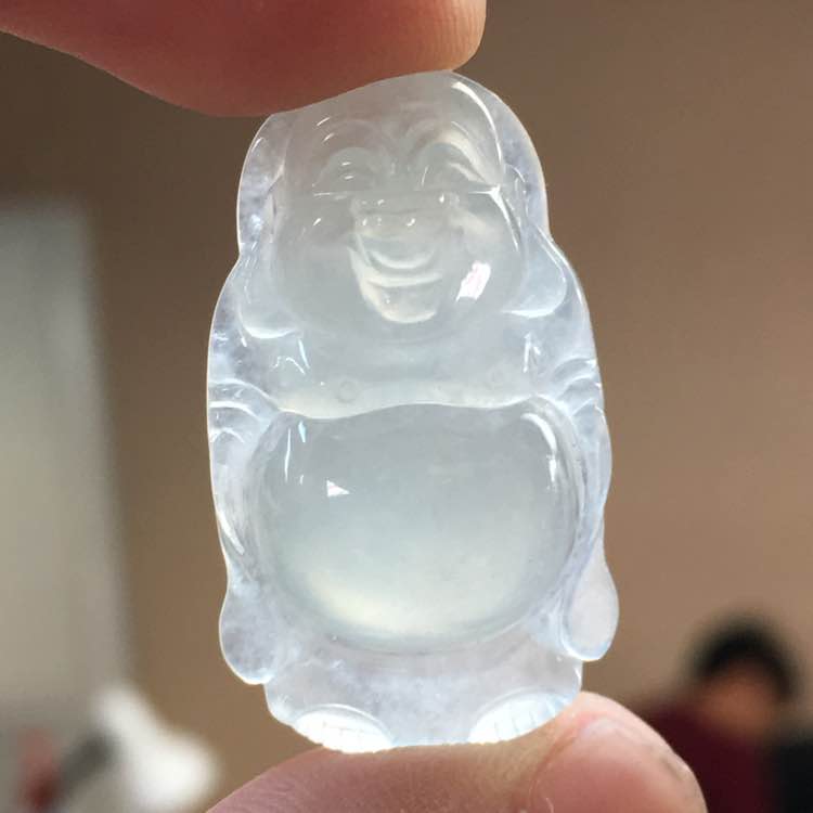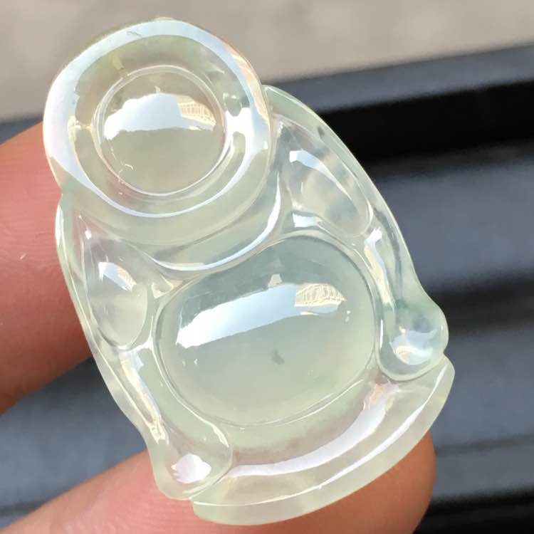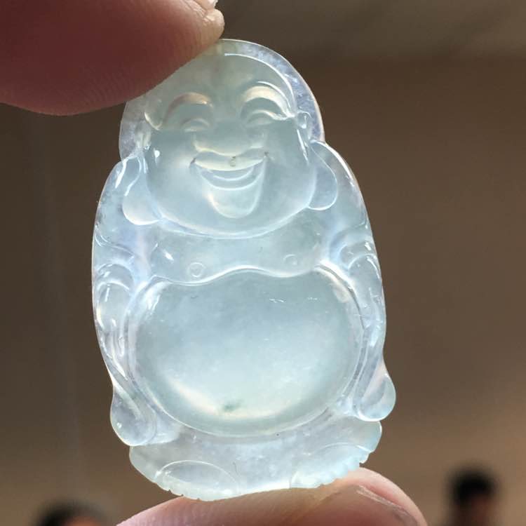 💰1268,冰种站佛吊坠:32.6-20.3-6.6mm,完整无裂,厚实饱满,圆润光滑,底子细腻