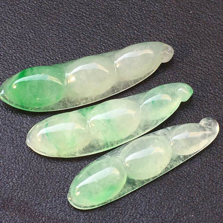 💰800,飘阳绿四季豆3⃣️一起走:取一28.8-8-5.2mm,完整无裂,玉体飘阳绿,色泽艳丽,水润光滑,色韵俱佳,便宜到没朋友😂😂😂