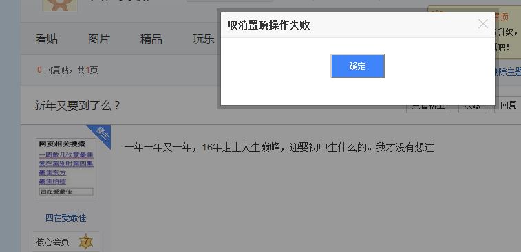 吧主 删除主题,取消置顶都是失败