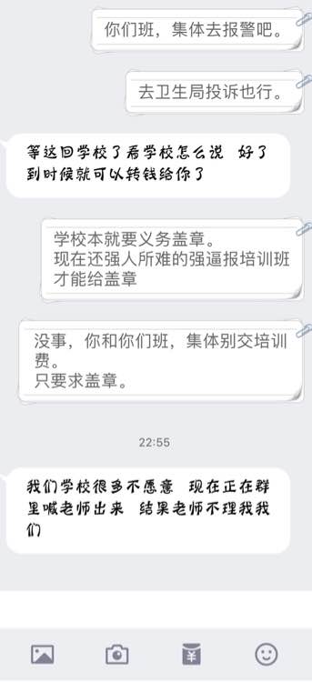 不交培训费,就不给学生盖章。