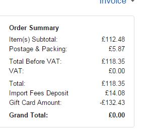 这是我在英亚购买的价格,是132.43英镑,用的建行卡,理论上这个价格再打8折,就是购买的价格,按今天的汇率132.43*0.8=105.94英镑,按今天的汇率就是904元人民币,而且有可能60天以后退税,只是有可能,就是那个14.08英镑,所以说,想买的话等明天黑五吧,总能买到几个好东西